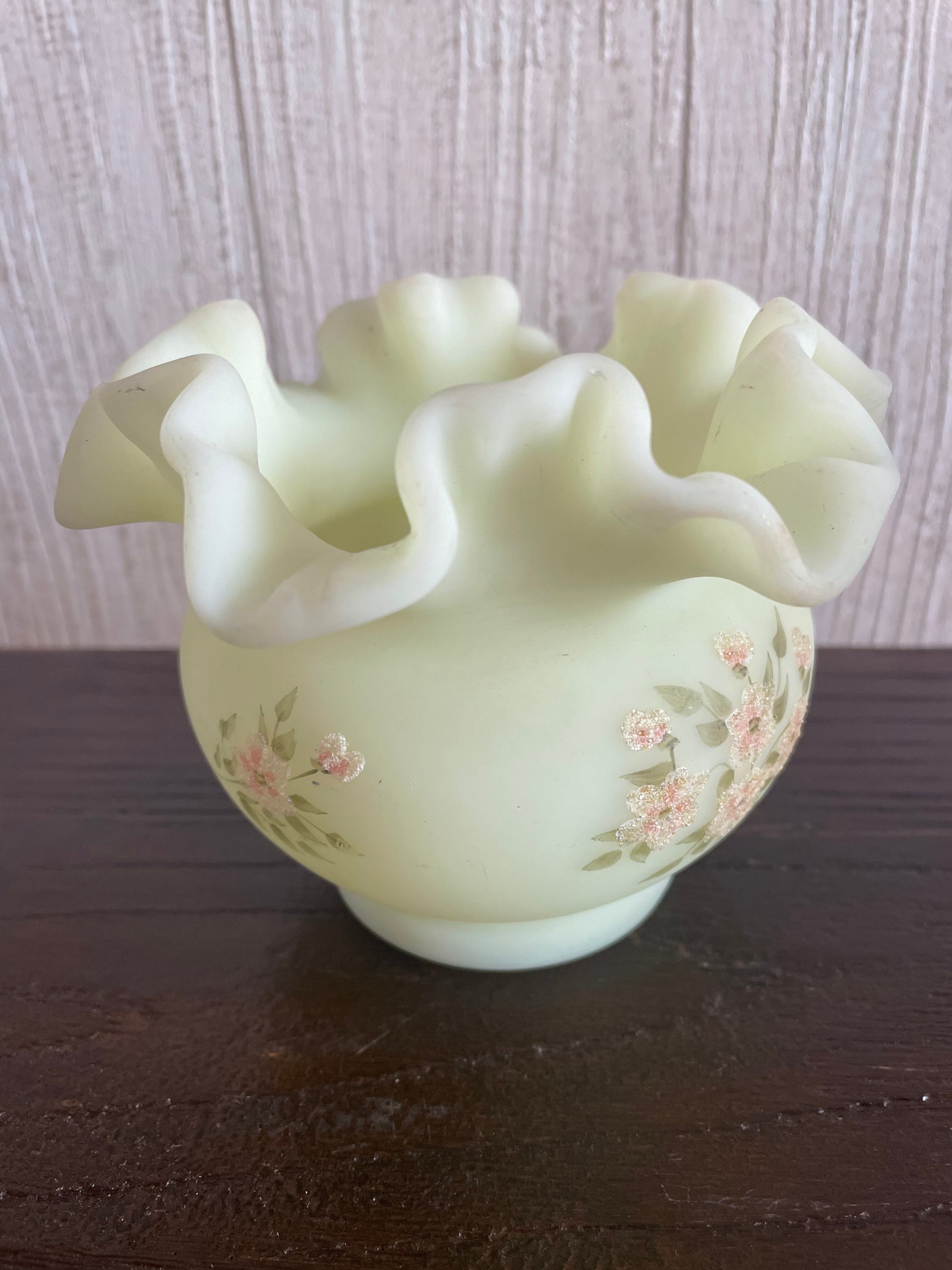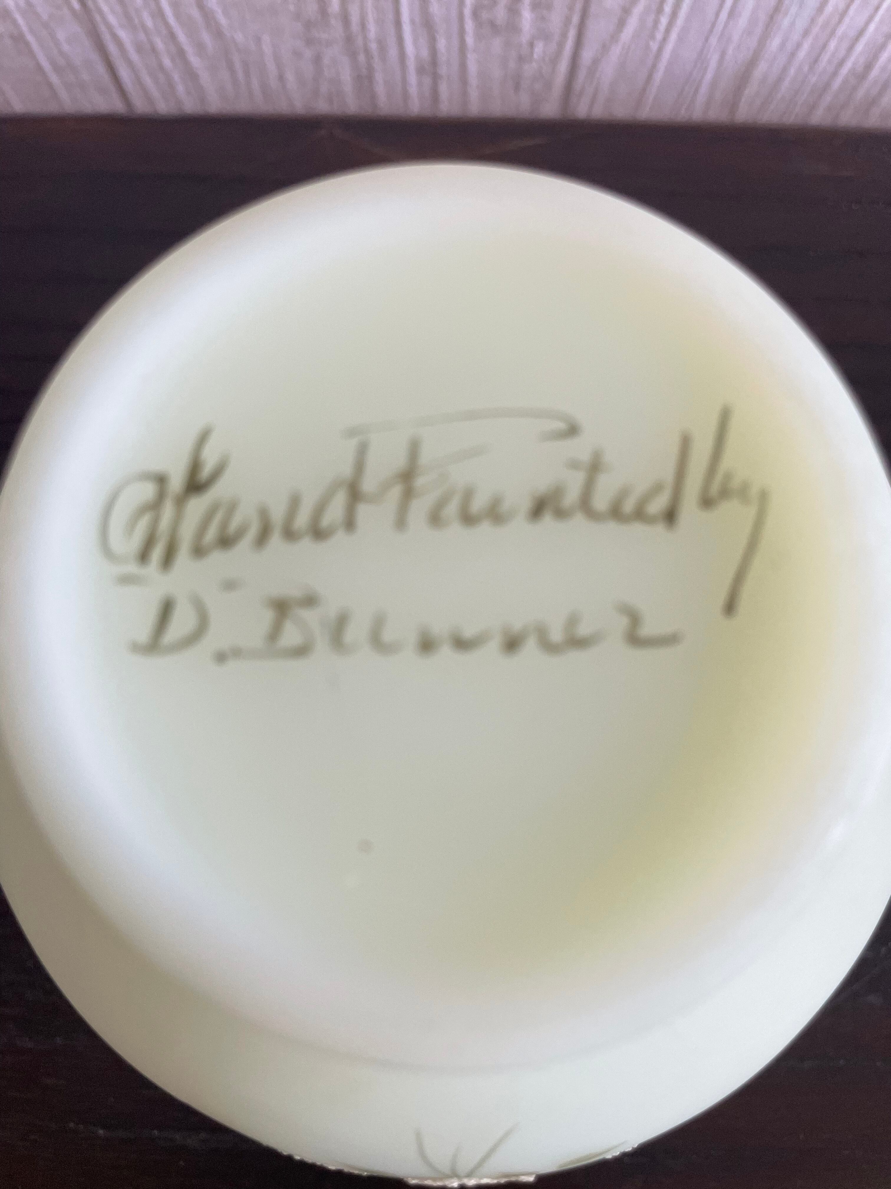Fenton フェントン ハンドペイントサイン付き花器。裏底にアーティストさんのサインあります。