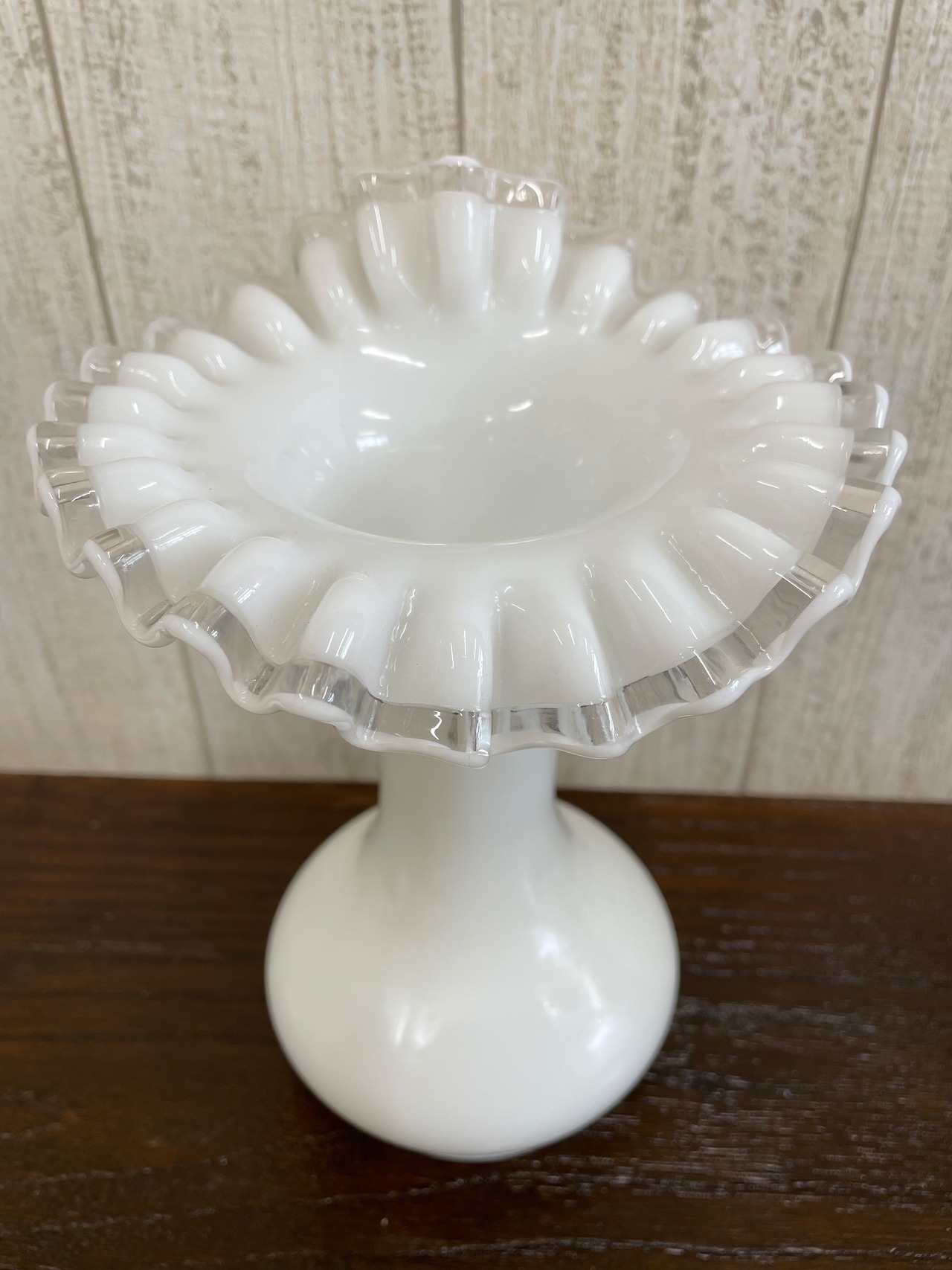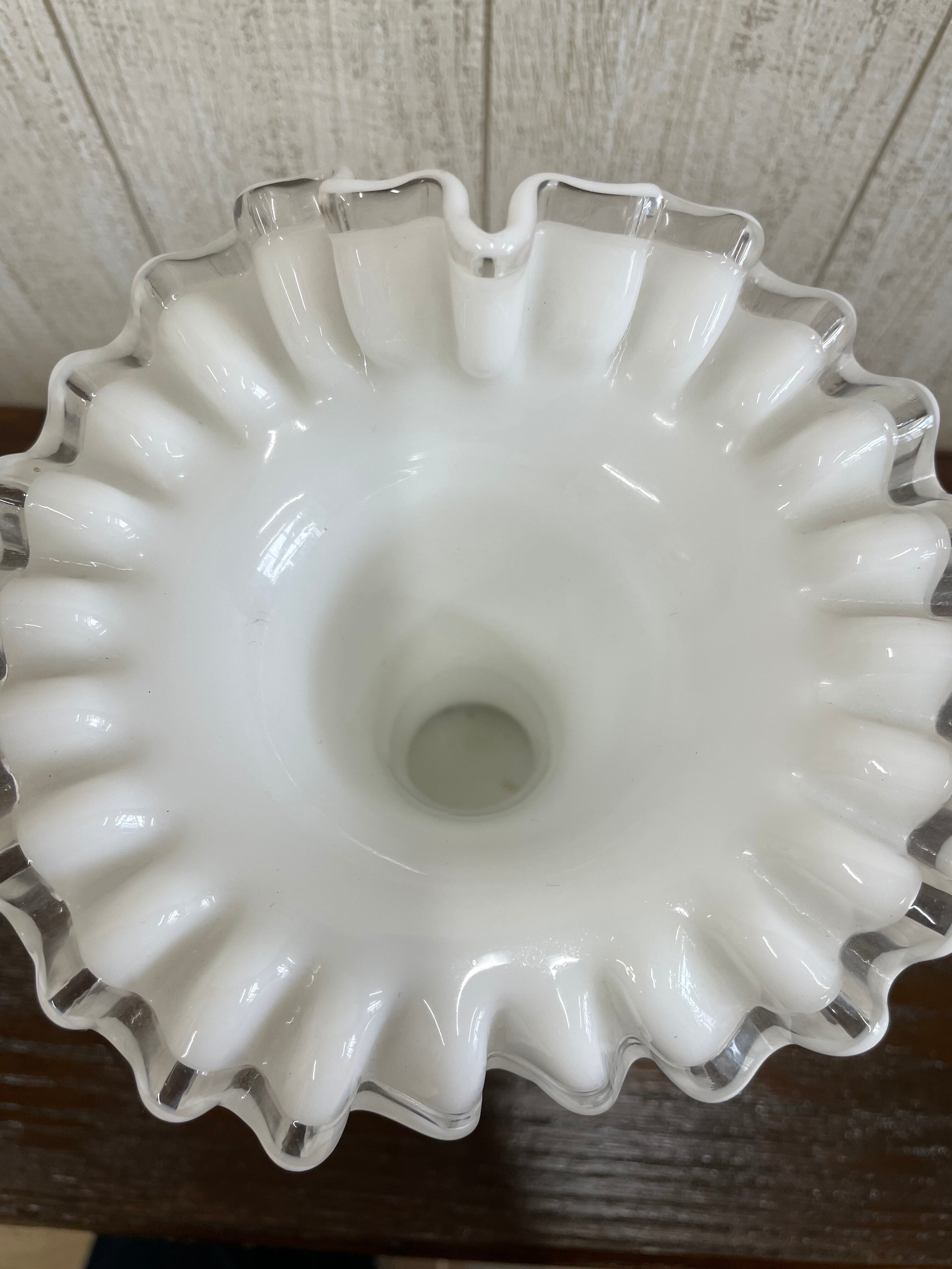 推定1941年製 Fenton ハンドメイドのガラス細工フラワーベース。ずっしりとしたミルクグラスです。