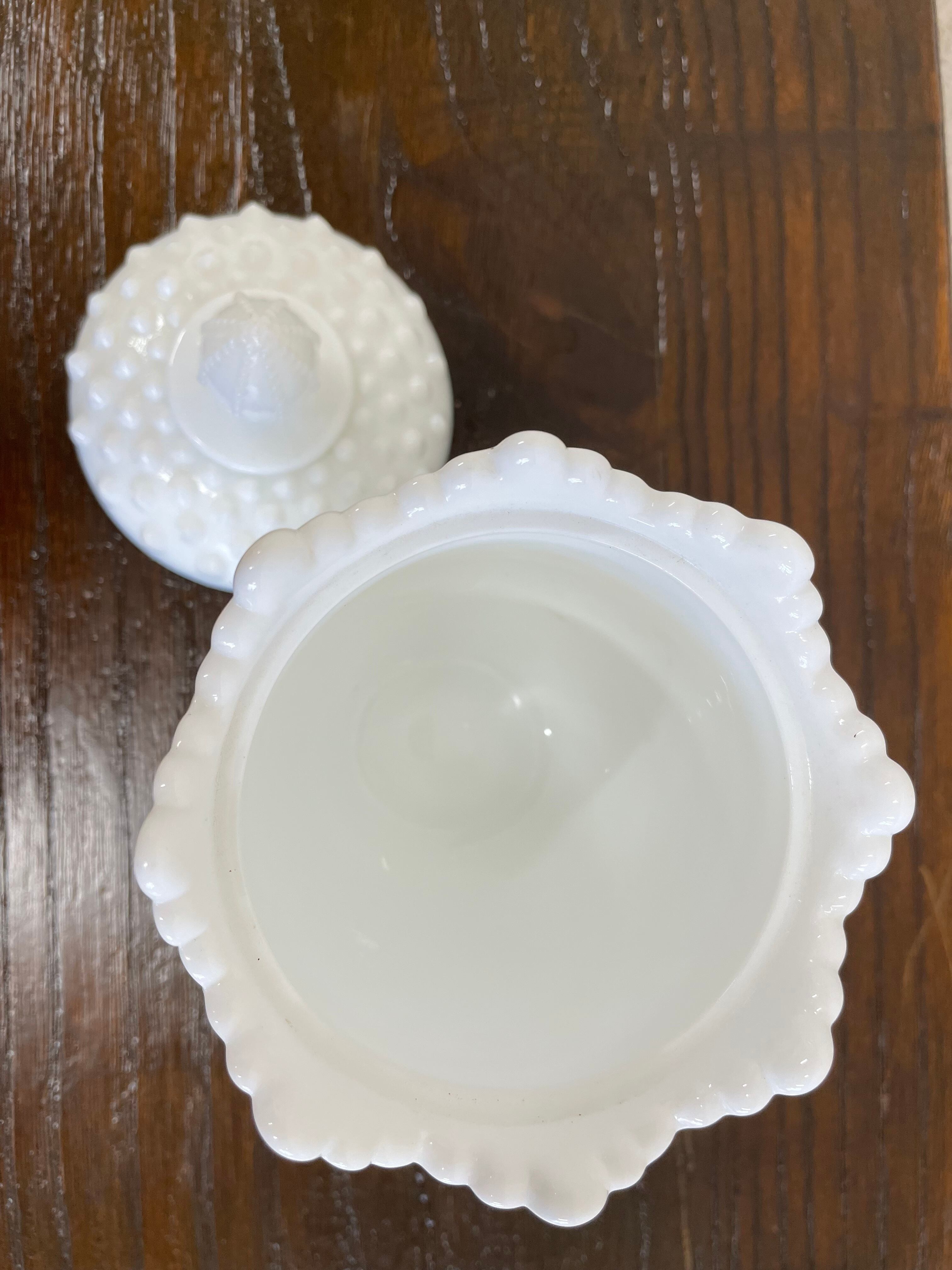Vintage Fenton Hobnail Milk Glass Sugar Pot
