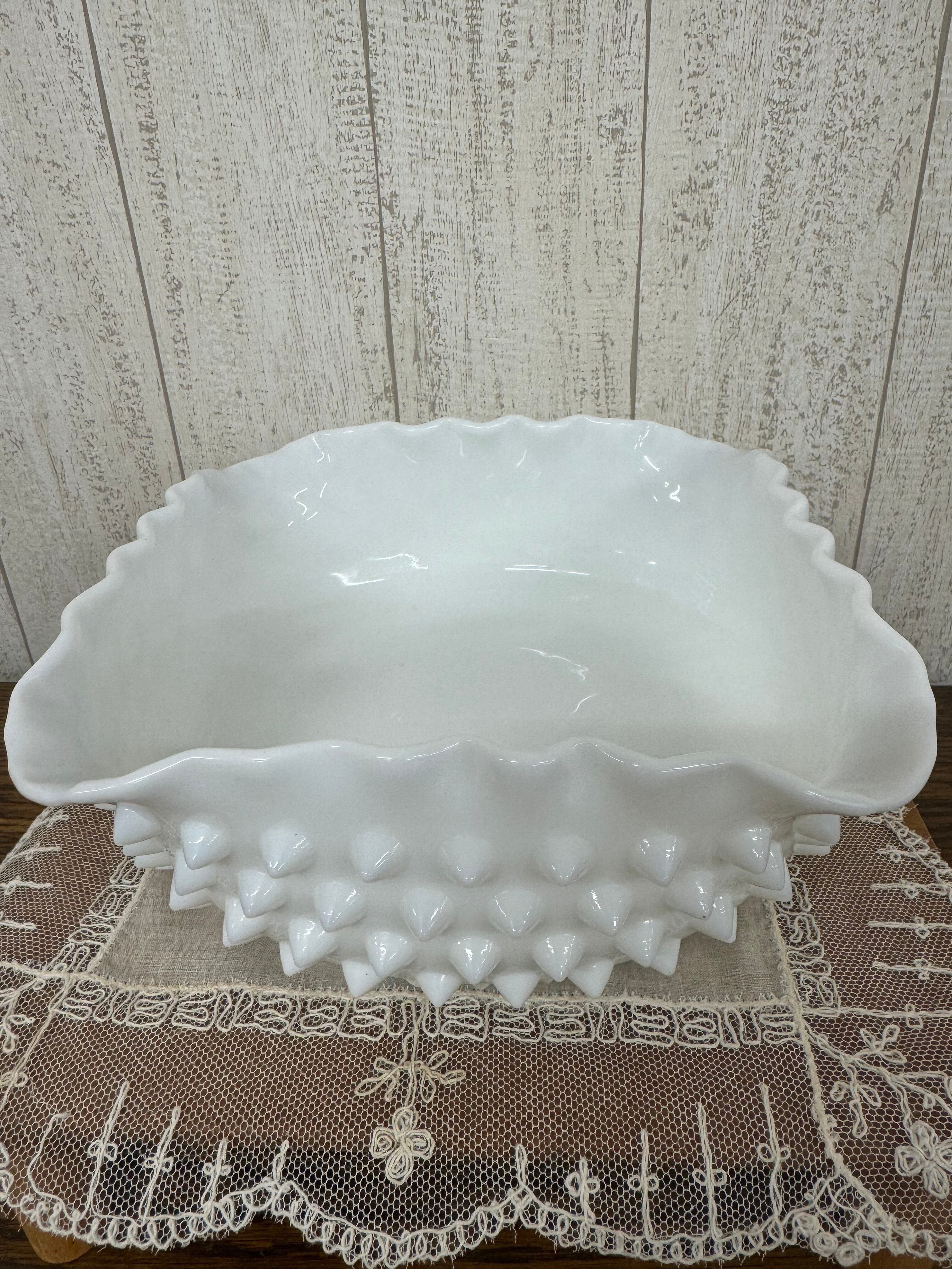 1960年代Fenton社のホブネイルミルクグラス スクエアディッシュ大