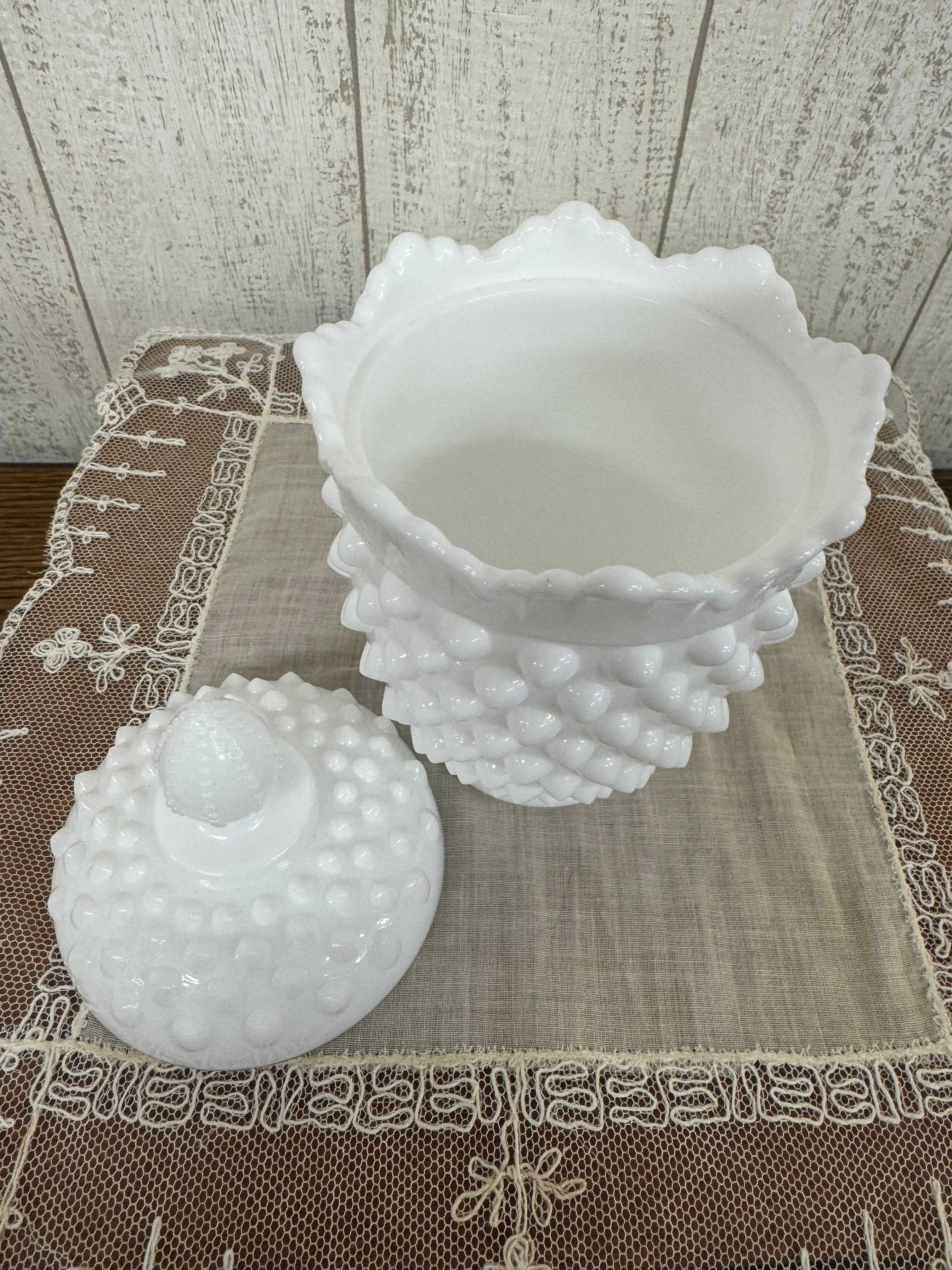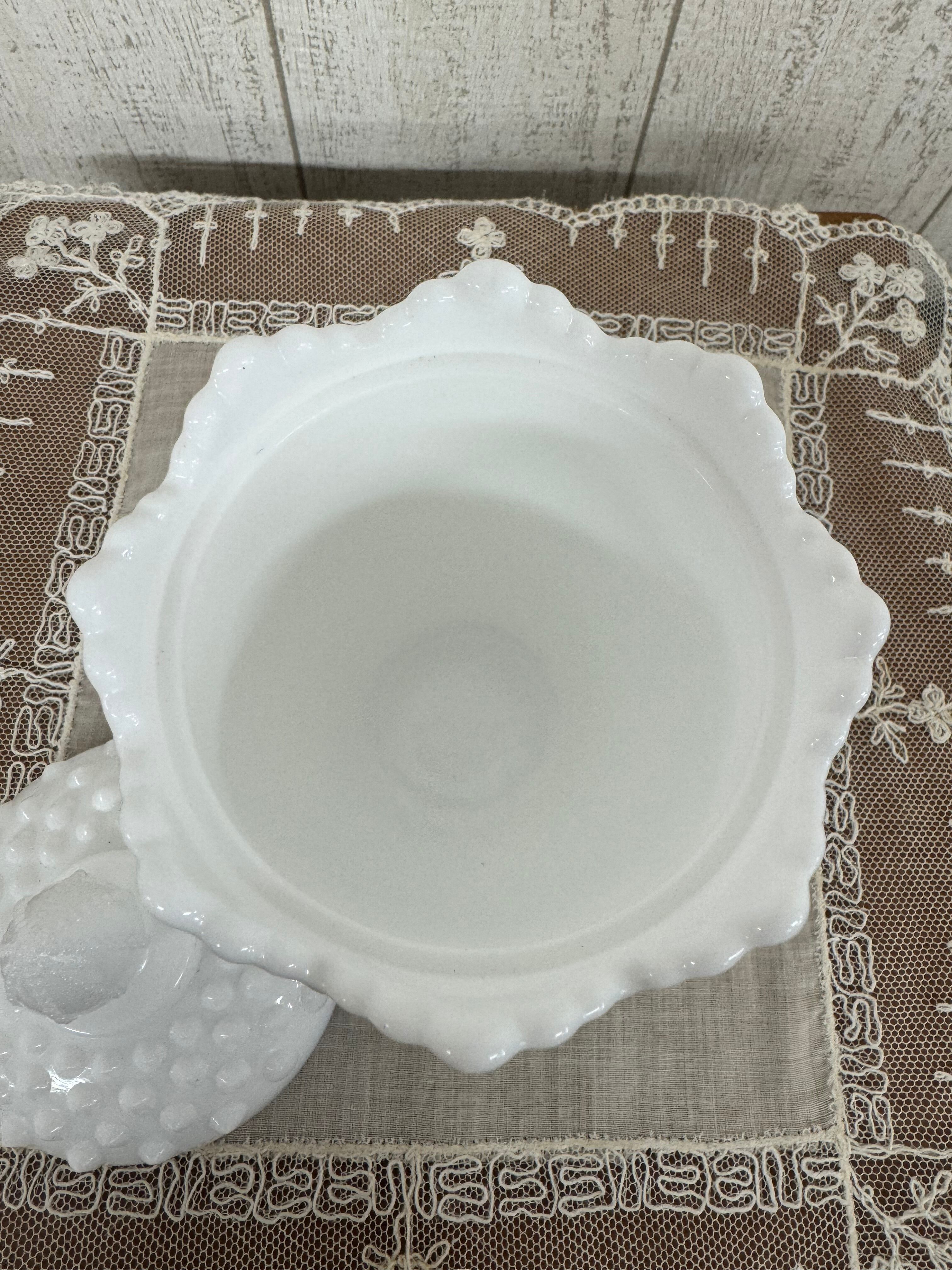 珍しいFentonホブネイル ミルクグラスのシュガーポット。